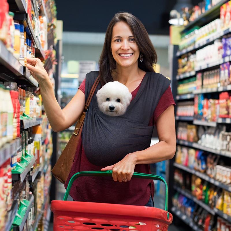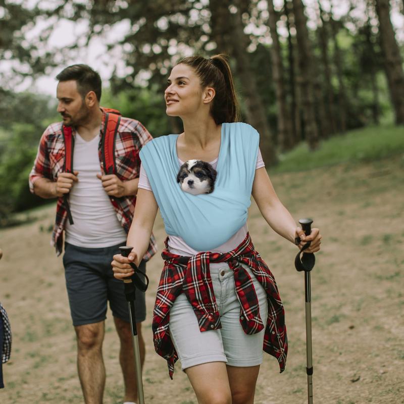 - [SAFETY FIRST & PREMIUM QUALITY] Our sling dog carrier is designed as small dog carrier and it holds pet of up to 15 pounds. It's a soft, high-end material made of 95% Cotton and 5% Spandex fabric. 95% Cotton allows for airflow and easy care and long-term durability. Like your favorite yoga pants, spandex gives the wrap the ability to form to your body and your fur kids.